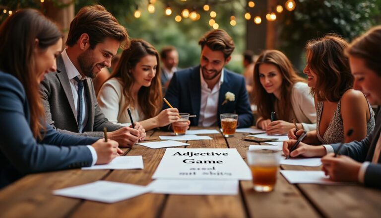 Le jeu des adjectifs pour mariage transforme un instant complice en souvenir explosif : les mariés, dos à dos, choisissent une pancarte pour répondre à des questions rythmées par un animateur. En cabine, je vois souvent des couples terrifiés à l’idée d’être sous les projecteurs — ici, la mécanique simple et visuelle rassure tout le monde et installe vite la convivialité. Pour Laura et Mehdi, que j’ai en tête comme fil conducteur, c’était le moyen parfait de mêler anecdotes, rires et petites révélations sans dépasser les limites du respect familial. Préparez quelques adjectifs bien pensés, une sonorisation correcte et un animateur complice : le résultat, c’est de l’interaction pure qui fait monter la festivité et le divertissement côté invités. Promis, l’animation reste ludique et adaptable : on évite les sujets sensibles, on dose l’humour, et on obtient des photos et vidéos qui vont circuler sourire aux lèvres toute la soirée.